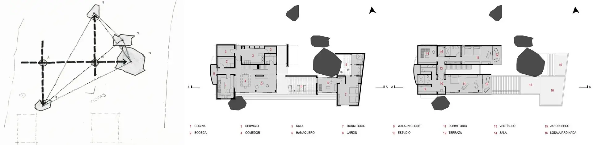 Ubicada a orillas del lago y con vista hacia el volcán de Santa Ana. Esta quinta incorpora el paisaje natural que posee tres rocas gigantes fundidas en la morfología del terreno. Estas definen la organización del diseño, creando dos ejes visuales que integran el entorno con la quinta. Por medio de tragaluces el diseño de la casa incorpora la ventilación e iluminación natural.