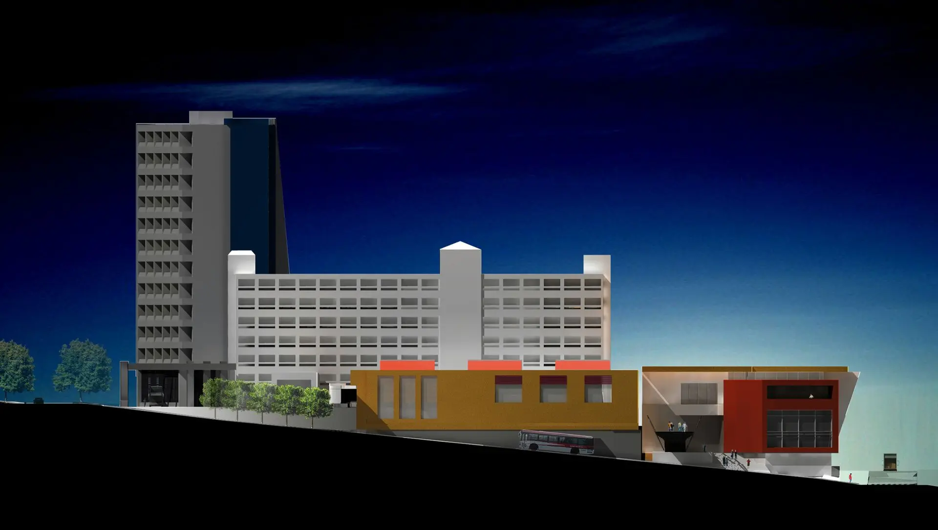 A partir de este análisis, se exploraron diversas alternativas que culminó con la propuesta de un edificio de oficinas corporativas con una geometría distintiva, además de plazas peatonales y estacionamientos complementarios.